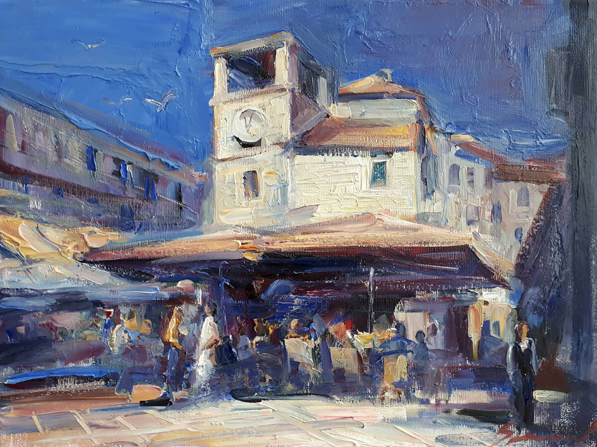 Slika na razne načine, ali najviše u impresionističkom duhu, nastojeći da što brže zabilježi svoj utisak. Voli boju, svjetlost, trag slikarske četke na platnu.